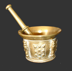 Mortero del siglo XVIII con escudo de Alcalá de Henares