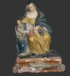 Terracota del siglo XIX de Santa Ana enseñando a leer a la Virgen niña.