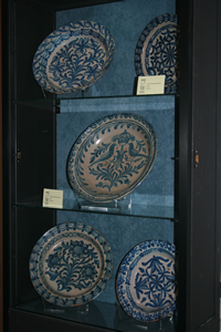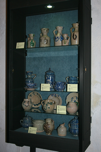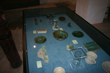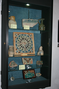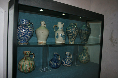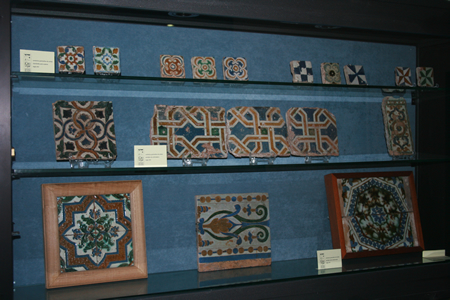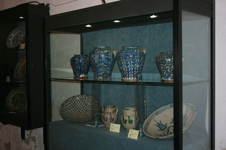 Destacan un azulejo de lacería de cuerda seca formado por cuatro azulejos de 20 x 20 cm del siglo XV y una jarra vinatera en color verde también del siglo XV.